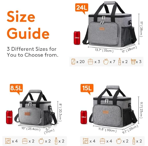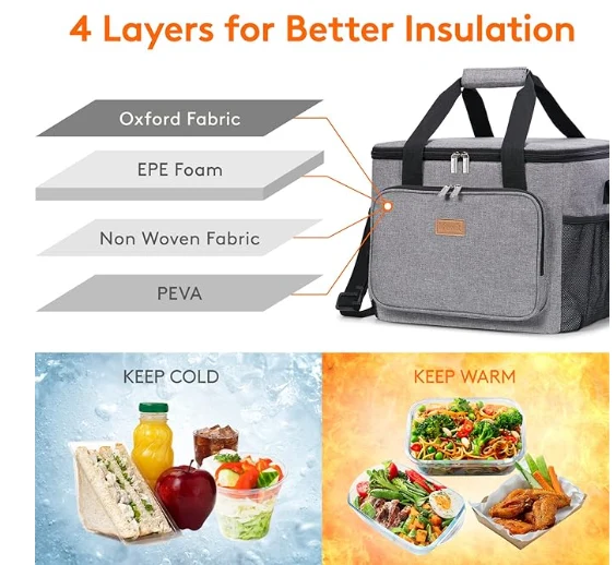 Kapasitas Besar: Dimensi - 13,8 "(35cm) × 11" (28cm) × 11 "(28cm). Kapasitas maksimum kotak makan siang untuk orang dewasa adalah 24L, dan cukup luas untuk menyimpan 40 kaleng kokas (330ml), atau makan siang Anda seperti sandwich, salad, makanan ringan, minuman, minuman dan buah -buahan.