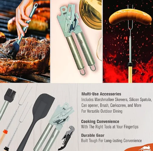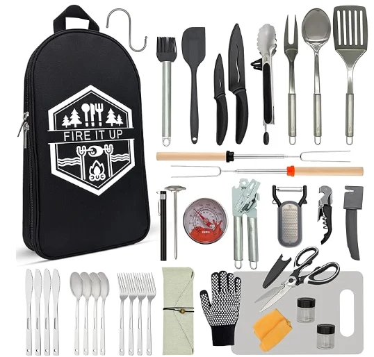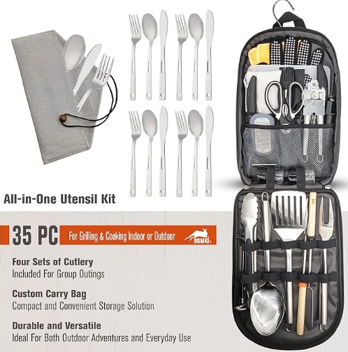 Tas penyimpanan peralatan masak outdoor berkemah set peralatan memasak berkemah 35 pc ini adalah solusi lengkap untuk kebutuhan memasak di luar ruangan Anda. Ini termasuk set dapur berkemah dan peralatan memasak peralatan berkemah, semuanya dikemas dengan rapi dalam tas khusus dengan kompartemen tambahan dan dua kantong belakang. Set ini dirancang untuk memenuhi semua hal penting masakan berkemah Anda, menjadikannya tambahan yang sangat diperlukan untuk peralatan berkemah Anda
