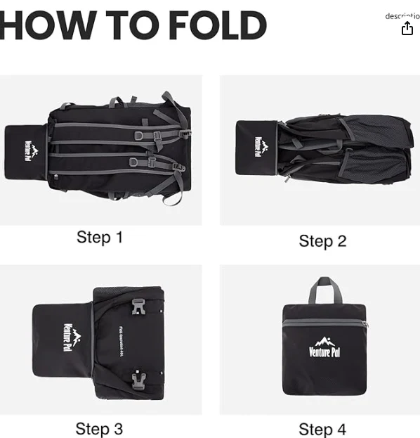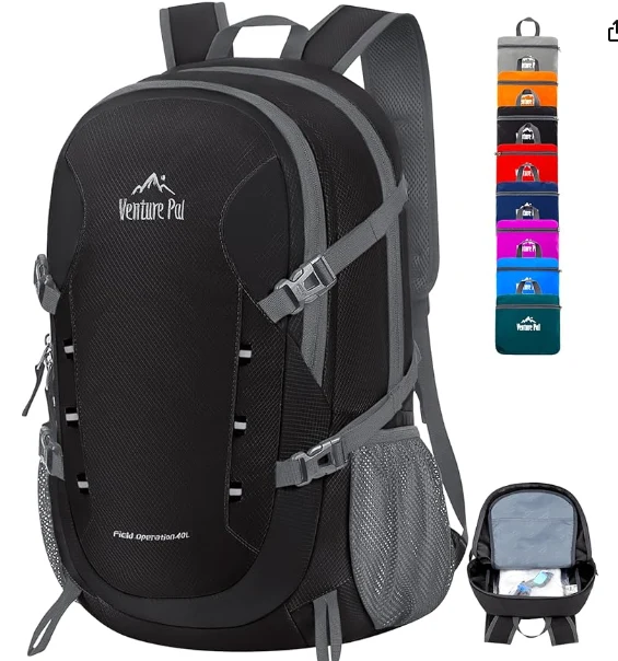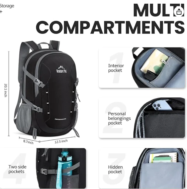 Ransel lipat hiking tahan air, satu saku basah tahan air ditambahkan ke kompartemen utama, ritsleting di belakang ransel ini yang mengarah ke saku basah internal, untuk memisahkan pakaian berkeringat, handuk atau barang pribadi lainnya setelah berenang atau berolahraga